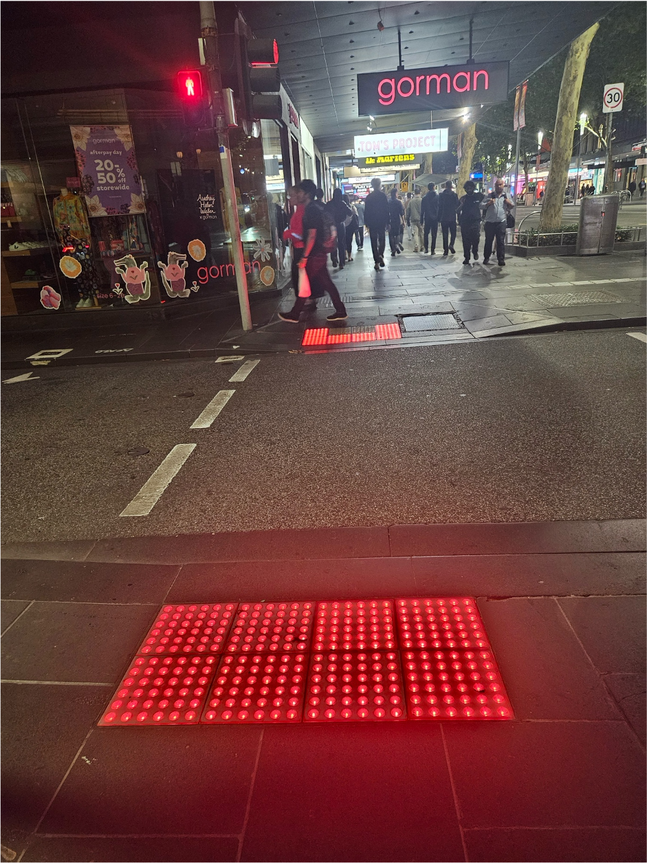 It answers this question: How do you get people to look up from their phones and look at the pedestrian crossing signals?