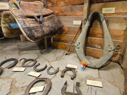 A My Little Pony toy nestled in with horse-and-cart gear like it owns the place